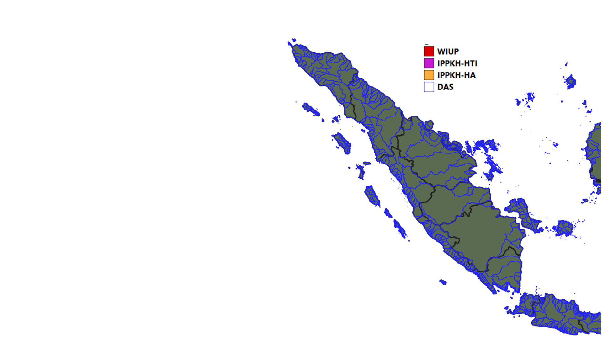 Katadata melakukan analisis spasial dengan data DAS dan konsesi Izin Pinjam Pakai Kawasan Hutan untuk Hutan Alam dan Hutan Tanaman Industri (IUPPKH - HA & IUPPKH - HTI) serta Wilayah Izin Usaha Pertambangan (WIUP).