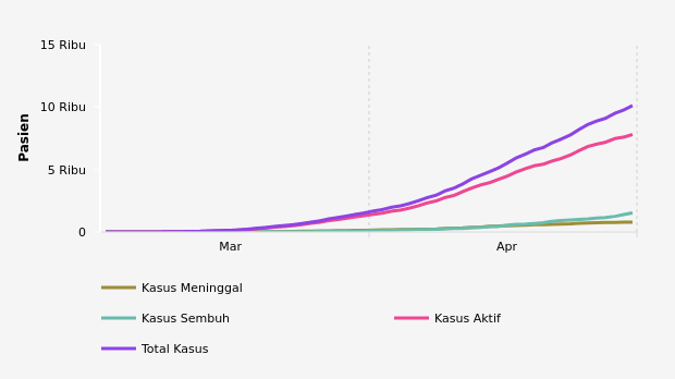 Data hingga Kamis (30/4), terdapat 10.118 kasus. Jumlahnya meningkat 347 kasus dari sehari sebelumnya. Total tes yang dilaksanakan telah menjangkau 72.351 orang sejak akhir Desember 2019.